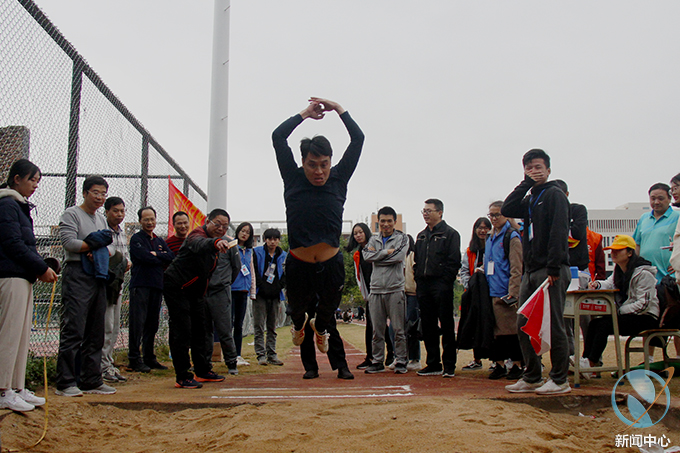 下午14时30分,我校举行教工中年组男子立定跳远决赛。经过三轮激烈的角逐,最终来自工商管理学院的邓德球选手以2.52m的成绩夺得冠军,来自工商管理学院的胡祖杰选手以2.47m的成绩取得亚军,来自人文学院的曾文雄选手以2.33m的成绩取得季军。