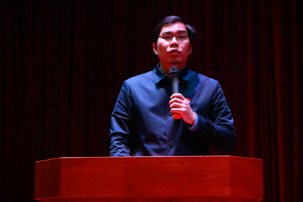 新当选学生会主席李慕史发言