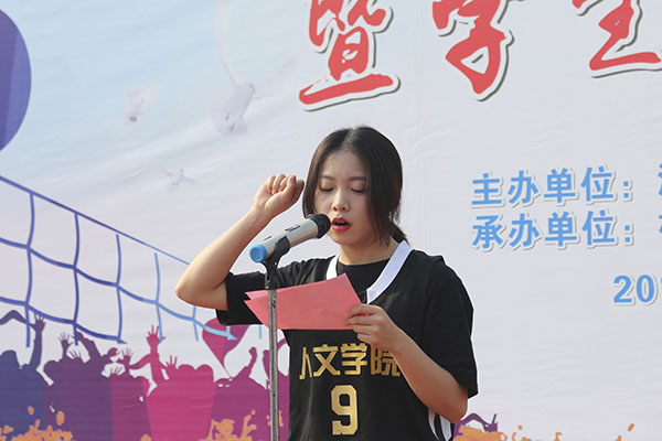 仪式在雄伟庄严的国歌声中拉开序幕。接着由艺术与设计学院杜伟祥院长上台致辞,他表示,体育教育是全面推进素质教育的重要内容之一,是校园文化的重要组成部分,运动会不仅为广大师生提供了展示自我的舞台,也加强了校园精神文明建设,进一步提升了我校文化品位,同时希望全体师生树立终身锻炼的体育健康理念,发扬团结友爱,文明守纪的精神,齐心协力,共同为此次校运会的成功举办贡献力量。随后,为保证赛事的公平、公正,运动员、裁判员代表先后上台宣誓。最后,艺术与设计学院杜伟祥院长宣布,BTY.COM第十五届运动会正式启动。