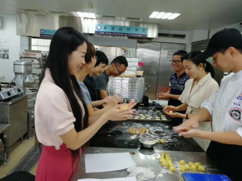 专业技能方面,各专业老师分开与相关专业的教师交流学习,酒店管理与烹调专业学习了台湾凤梨酥、养生菜制作,并与专业老师探讨两岸饮食文化;环境艺术设计专业教师学习了制作鲁班尺和小板凳,服装与服饰设计专业教师学习了美甲技法和皮包制作,兰阳技术学院的老师们技艺娴熟,精益求精,参加培训的教师在学习了专业技能的同时,对他们的工匠精神也深感钦佩。