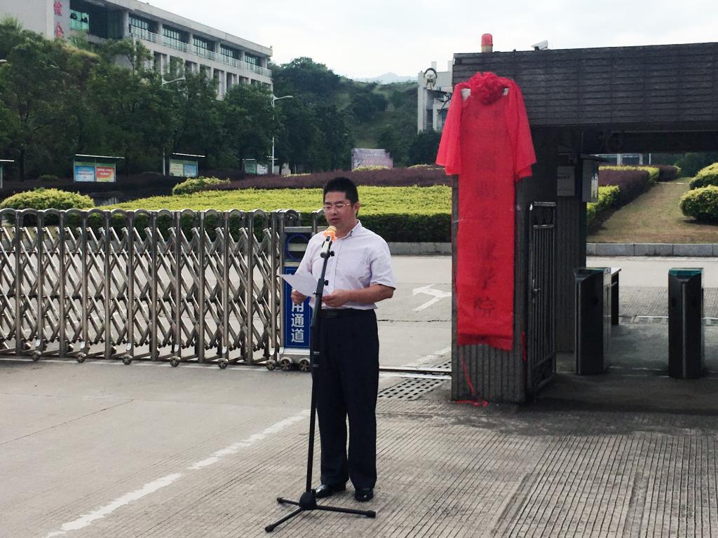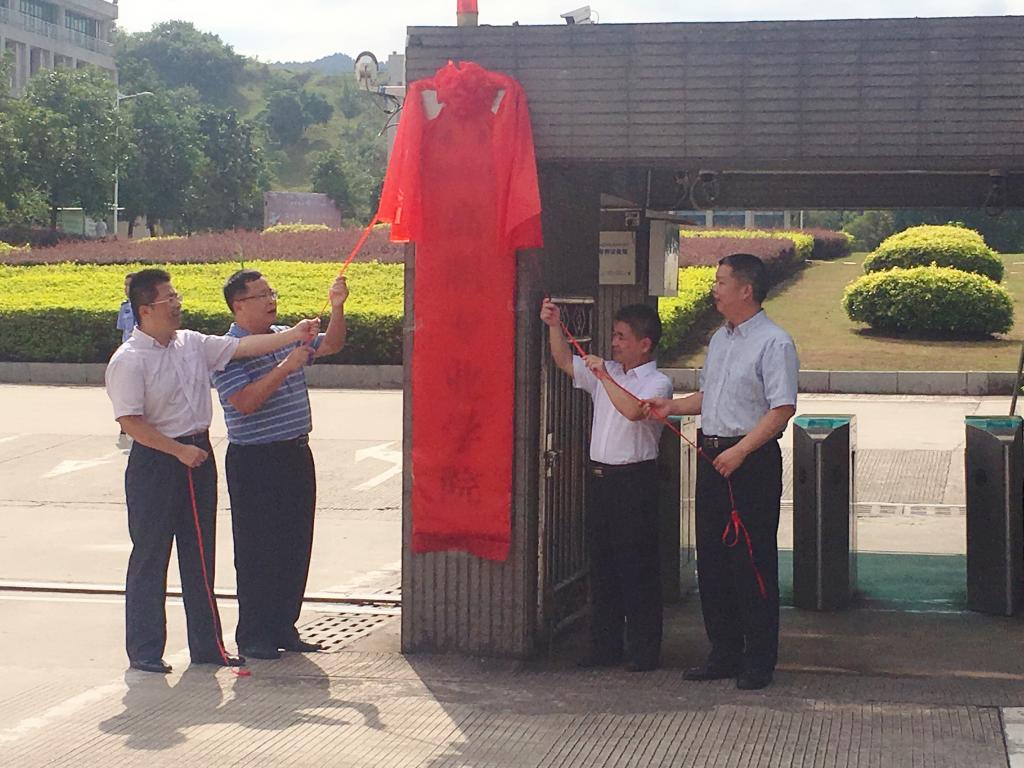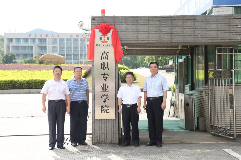 在揭牌仪式上,双方学校首先进行签约仪式,其次,我校唐汉芳副校长、教育局黄伟副局长、吴小波科长及理工学校邓伟昌校长共同为高职专业学院揭牌。