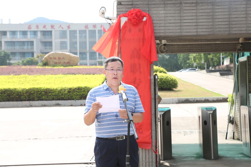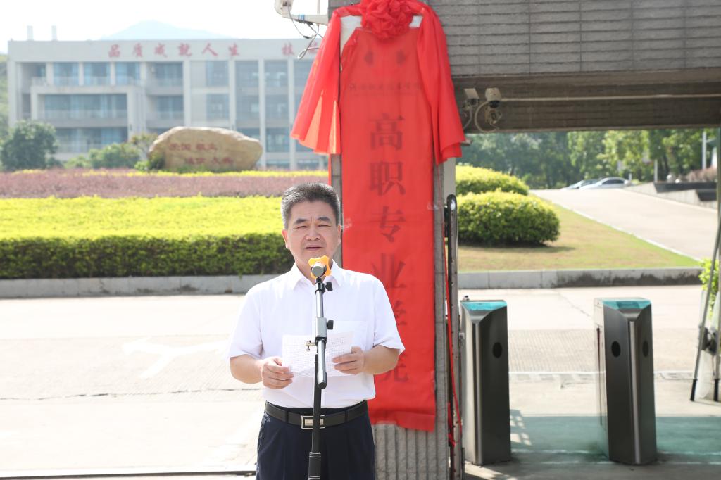 市教育局黄伟副局长对我校高职专业学院的成立表示祝贺,同时提出三点要求,一是要提高政治站位,高度重视,压实责任;二是要提高高职专业学院的育人水平;三是要注重高职专业学院的专业建设。