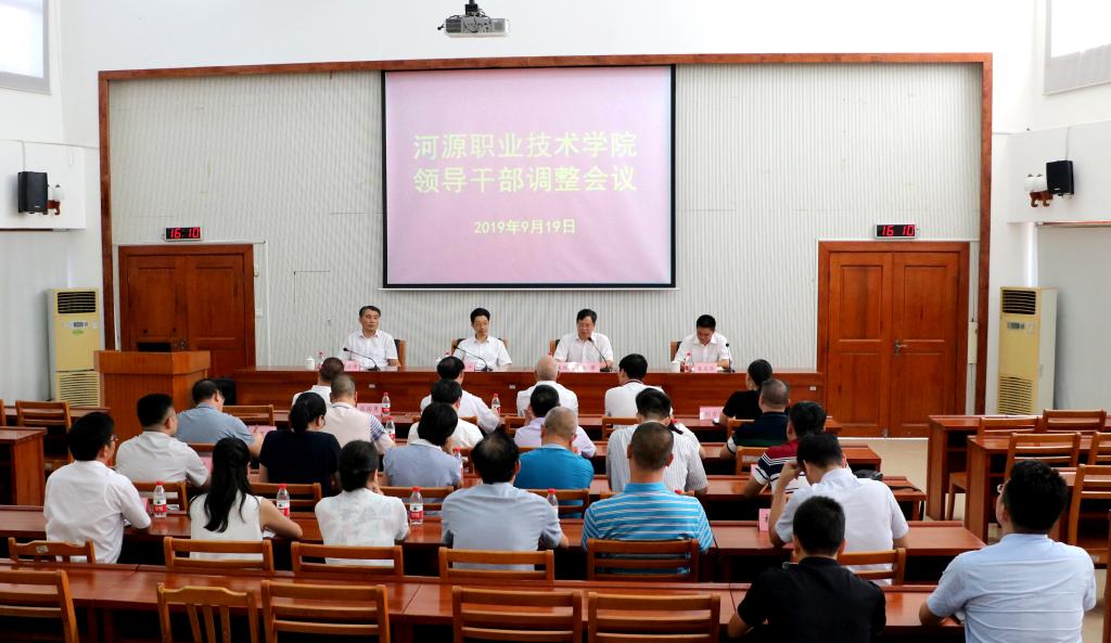9月19日下午,我校在行政楼C108召开学校领导干部调整会议。市委组织部副部长、市“两新”党工委书记吴志平同志,市委组织部干部三科副科长刘雪贝同志出席了会议。会议由党委书记韦荣主持,学校领导班子成员、各职能部门负责人参加了此次会议。