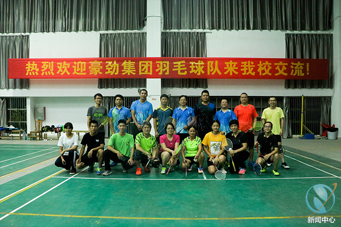 为了丰富教职工课余文化生活,提高身体素质,9月27日晚,豪劲集团与河职院羽毛球友谊赛在我校风雨操场举行。我校党委书记韦荣、党委宣传部部长赖新优和豪劲集团负责人吴可等出席本次比赛。