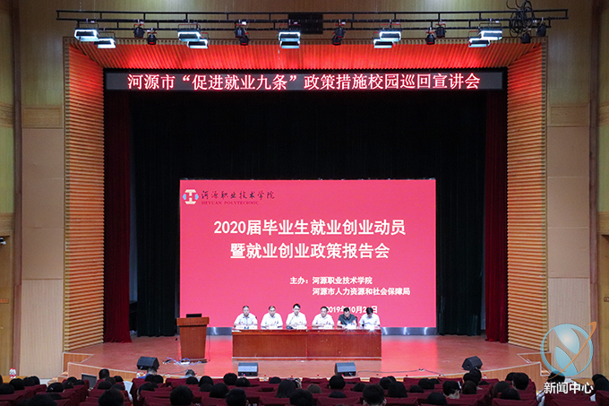 10月24日下午,我校联合河源市人力资源和社会保障局于图书馆学术报告厅共同召开2020届毕业生就业创业动员暨就业创业政策报告会。市人社局副局长张文胜、我校学工处处长何智聪,市人社局相关人员,我校各学院副书记、就业指导中心和就业创业学院全体人员、全体辅导员以及毕业生代表出席本次报告会。本次会议由何智聪处长主持。