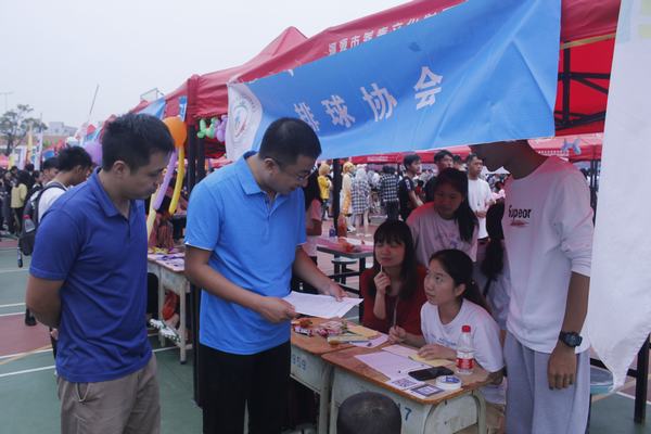 活动现场,各社团百花齐放,尽显风采。伴随着动感的音乐,街舞协会带来的《B-boy show》瞬间点燃全场的热情;吉他协会以娴熟的歌唱技巧及动听的声线演唱了《爱的飞行日记》、《一场游戏一场梦》,现场观众陶醉之中;古筝协会《小小竹排》给现场观众带来一场听觉盛宴;海燕话剧社以精湛的演技与诙谐的表演风格呈现了一场情节丰富的《非诚勿扰》节目;不仅如此,每个社团协会以自己的方式轮流上台表演,有动听的歌曲、刚劲有力的武术、精彩绝伦的舞蹈表演等,各展示出本社团的特色,为自己的协会进行宣传。跑旗环节更是把现场的气氛带到了高潮,各社团高举会旗,展示了我校学子激情四射的精神状态。期间,我校团委陈晓峰书记、团委办公室主任黄志远老师亲临设点摆摊的社团协会,与社团工作人员亲切交谈,并对他们给予肯定和支持。