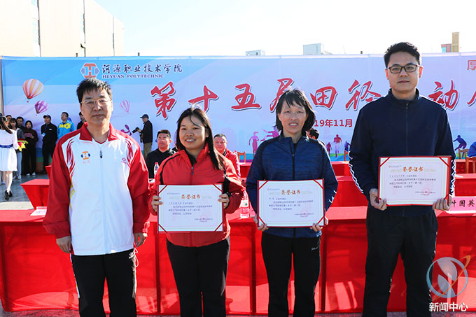 在正式开始本届运动会赛事前,我校为此前教工球类项目进行颁奖仪式,我校叶国英副书记、王小宁副校长、张国勇副校长分别为教工气排球男子组、教工气排球女子组、教工男子篮球、教工羽毛球等比赛获奖队伍进行了颁奖。