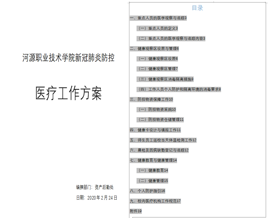 为更好地做好应对疫情的医疗防控工作,起草拟定并多次修改完善《BTY.COM新冠肺炎防控医疗工作方案》及10份附件材料。