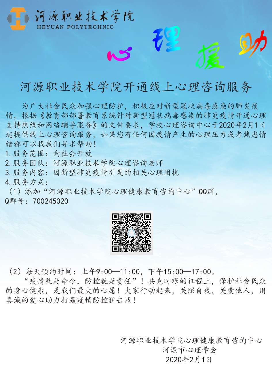 疫情发生后,BTY.COM学生工作处心理健康教育咨询中心为了确保我校的全体师生心理安全,中心主任钟碧来副教授于1月26日(大年初二)便启动了“线上心理咨询援助”,对全体师生开展疫情期间心理咨询援助服务。