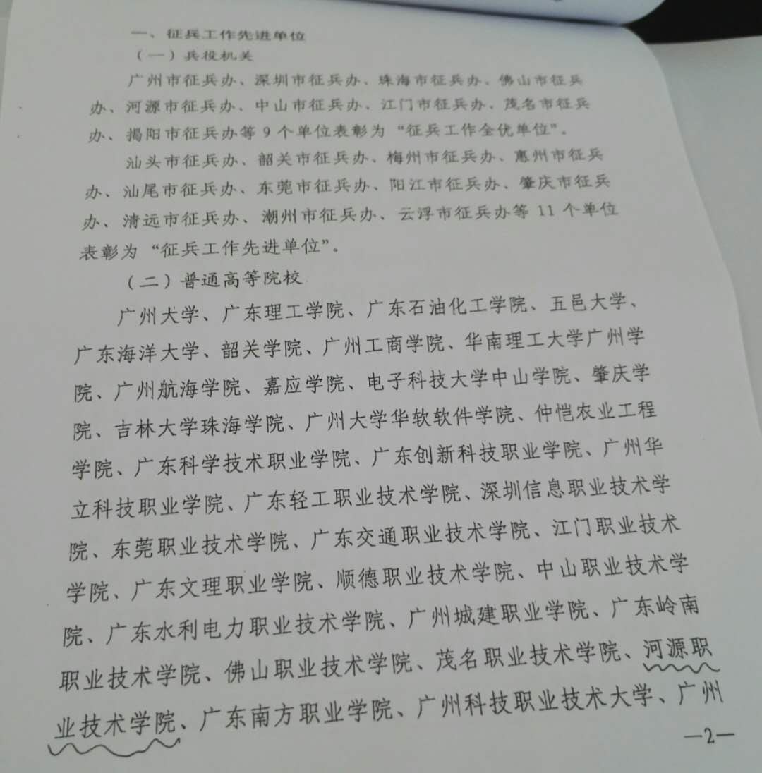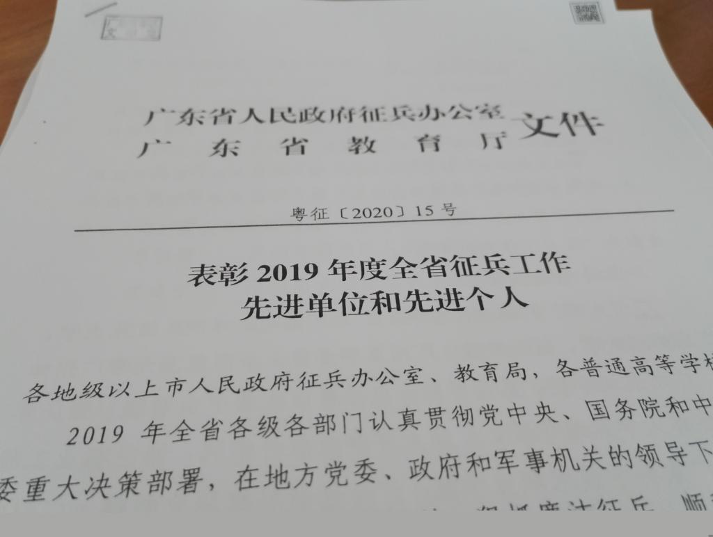 日前,从广东省人民政府征兵办公室、广东省教育厅印发的《表彰2019年度全省征兵工作先进单位和先进个人》(粤征〔2020〕15号)通知,BTY.COM荣获“2019年度广东省大学生征兵工作先进单位”称号。学校已连续两年被广东省人民政府征兵办公室、广东省教育厅评为“广东省大学生征兵工作先进单位”。