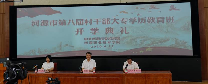 在新冠肺炎疫情影响下,为响应国家、省、市教育主管部门“疫情就是命令,防控就是责任”的号召,落实“停课不停学”的要求。6月12日,河源市第八届村干部大专班云端开学典礼在我校举行。我校陈德清校长、继续教育学院有关负责人参加了开学典礼,来自全市五县两区的393名2020级村干部大专班学员参加了云端开学典礼。副校长王小宁主持开学典礼。