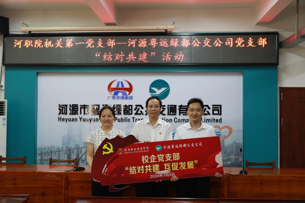 2020年7月9日,我校机关第一党支部组织全体党员赴河源市粤运绿都公共交通运输有限公司(以下简称“绿都公交公司”),与该公司党支部开展庆祝建党99周年主题党日活动--校企党支部“结对共建”活动。