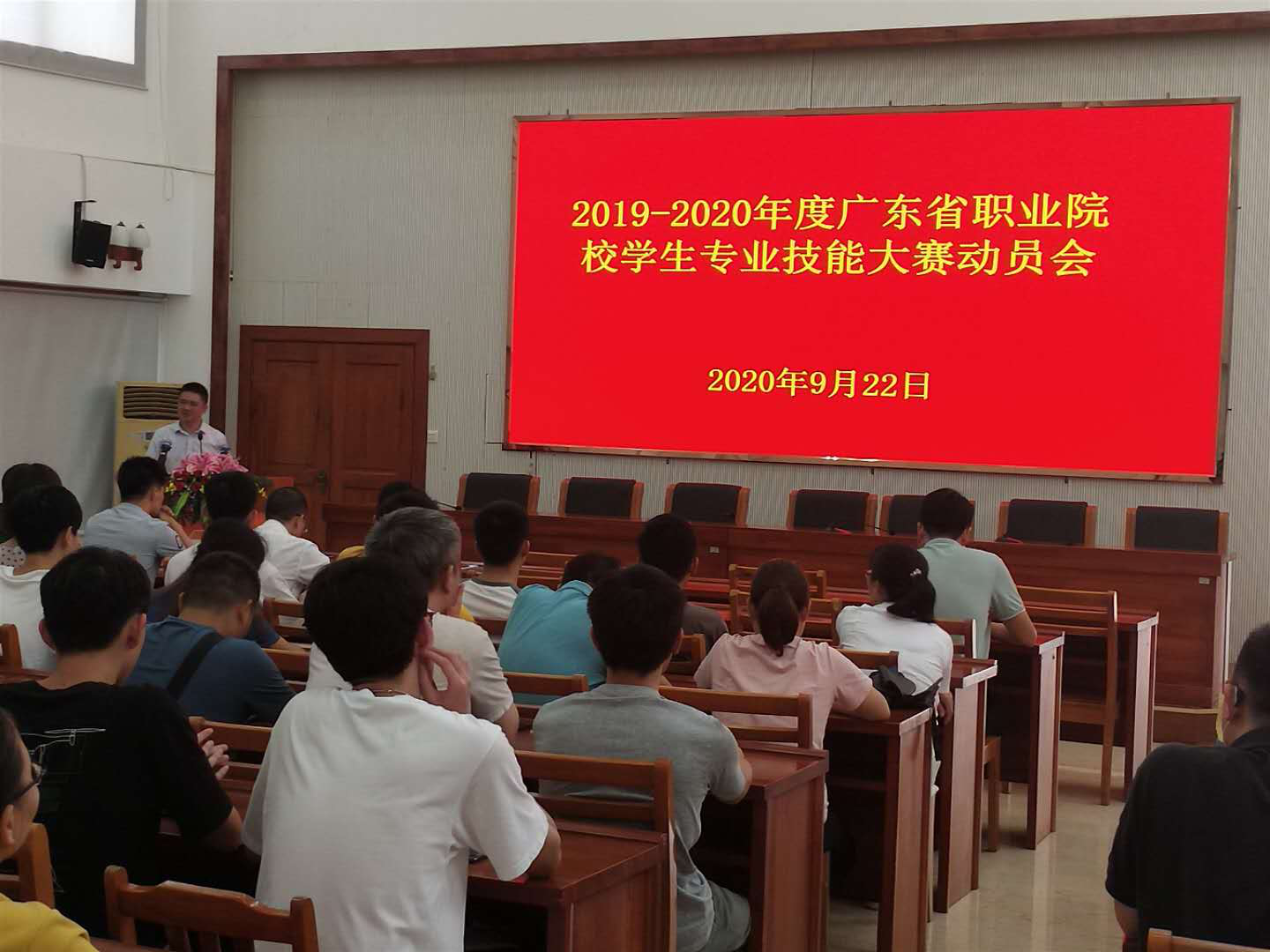 9月22日,我校在行政楼C108召开2019-2020年度广东省职业院校学生专业技能大赛动员大会,袁光华副校长、教务处和二级学院相关领导、参加省赛的各代表队指导老师和学生参加了动员会。