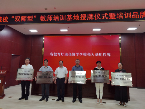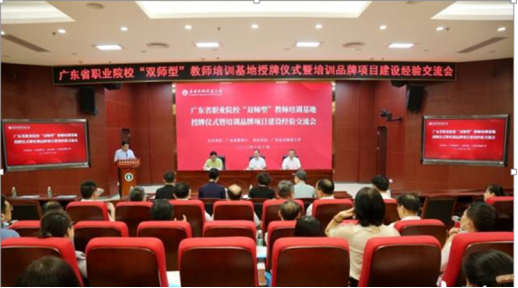 会上,省教育厅教师继续教育指导中心主任邓旭峰宣读了《广东省职业院校“双师型”教师培训基地名单》,广东省教育厅主任督学李璧亮为27所“双师型”教师培训基地授牌。新遴选基地的代表作了表态发言,广东技术师范大学、广州番禺职业技术学院、广东轻工职业技术学院、广东省贸易职业技术学校4所基地介绍了培训品牌项目建设经验。