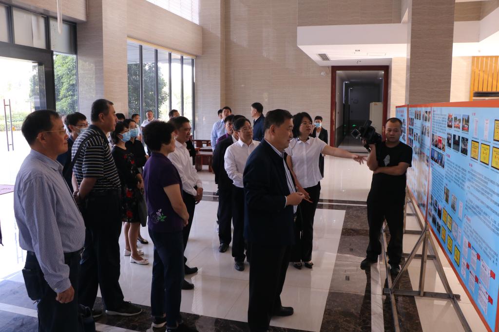 调研组先行到达我校学术交流中心一楼,听取了我校继续教育学院李文萍院长介绍“党建引领人才培养,教育助推乡村振兴”办学成果,重点围绕村干部大专班、退役军人培训、高职扩招项目、乡村振兴培训项目进行讲解。