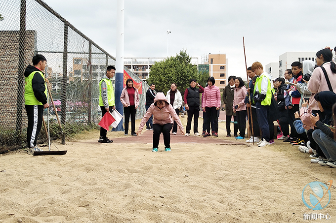 上午九点,我校在学院田径场举行女子丁组立定跳远决赛,本次比赛共有12名参赛选手。在寒风凛冽的天气中,比赛开始,选手站定、起跳、腾空、再沉稳落地,四部分动作连贯成为一个完整的统一体。经过三轮激烈的竞逐,机关工会中年组王韶红以1.99米的佳绩荣获冠军,人文工会中年组曾艳平以1.81米的成绩获得亚军,电子与信息工会中年组张连姣以1.80米的成绩获得季军。