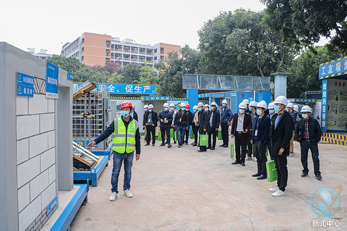 本次活动的目的为交流学习先进项目管理经验,创新项目管理办法,提升项目管理水平。观摩会上,我校学生活动中心项目承建方广东金辉华集团有限公司有关负责人就项目建设作了经验介绍,随后分成三组现场观摩,主要观摩内容有:一是安全文明施工,具体包括施工通道、材料加工场、脚手架、现场布置等;二是结构质量、工法和实体样板,包括结构、砌筑、抹灰、门窗、水电等;三是工地信息化系统,包括视频会议系统、工人实名制系统、远程监控系统等。
