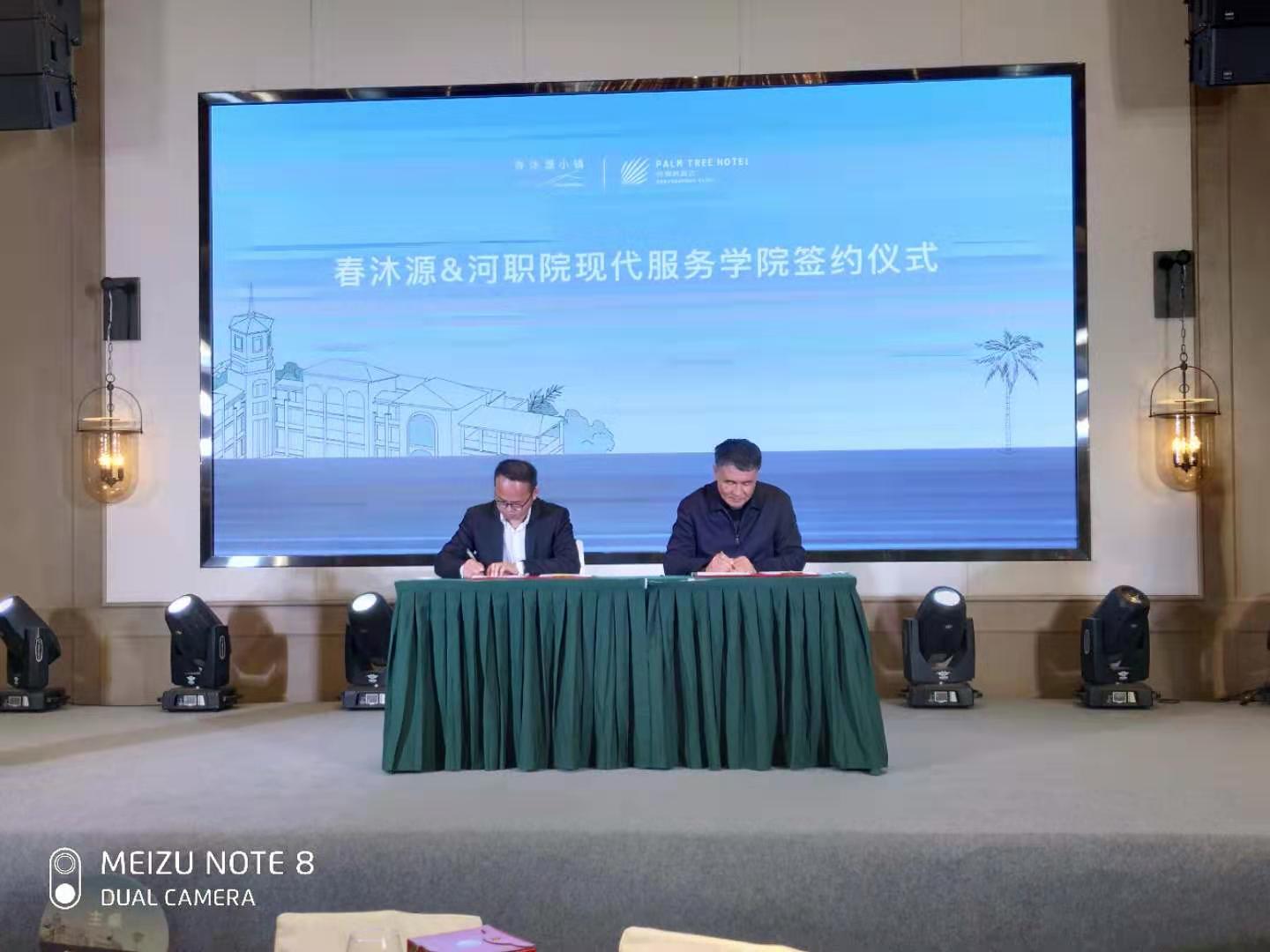 庆典活动上,陈德清校长代表河职院与春沐源集团签约共建现代服务产业学院。