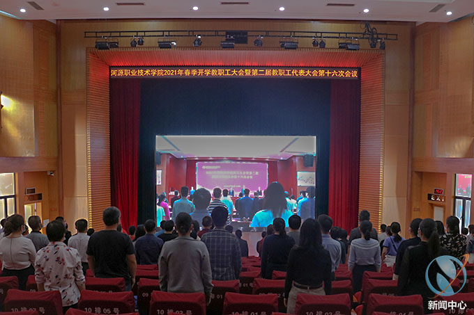 初春的南国,校园生机盎然,3月16日,我校召开2021年春季开学教职工大会暨第二届教代会第十六次会议,大会设立了1个主会场和1个分会场。我校党委书记韦荣,校长陈德清,副书记叶国英,副校长赖小景、王小宁、张国勇、袁光华在交流中心报告厅主会场就座,135名教代会代表和全体教职工参加了大会(部分教职工在图书馆分会场通过视频直播收听收看大会实况),学校后勤保障服务商代表列席会议。此次会议由王小宁副校长主持。