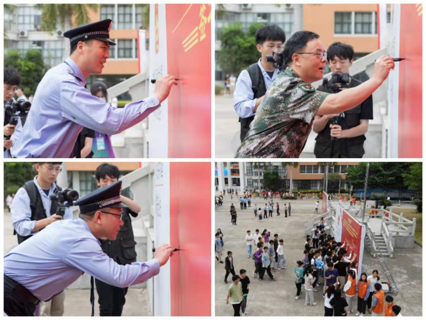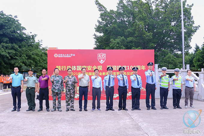 为深入贯彻总体国家安全观,增强全民国家安全意识,巩固国家安全人民防线,迎接建党100周年,4月15日,我校在贤能广场隆重举行2021年“全民国家安全教育日”专题教育暨宣誓签名仪式。河源市公安局反恐支队政委钟亮,副支队长杨志旺,江东分局党委委员、刑警大队长何城辉,派出所副所长聂建平,交巡警江东大队陈晓团、肖远业,学校党委委员、副校长王小宁,保卫处,电子与信息工程学院全体师生及各二级学院师生代表参与了此次活动。活动由电子与信息工程学院团总支书记杨日奎主持。