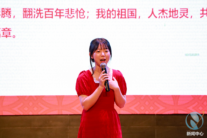 在随后进行的诗歌朗诵总决赛阶段,选手们以饱满的激情抒发对祖国、对中国共产党的热爱。最终,19英语教育五年制1班的梁云舒以一首《我的祖国》荣获一等奖。