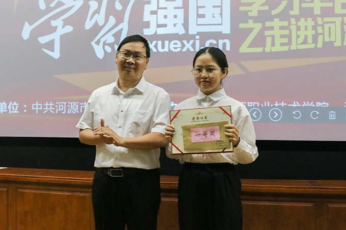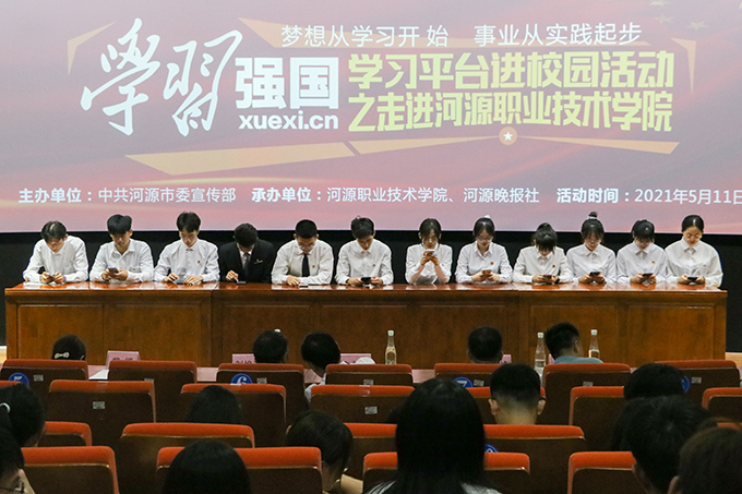 为庆祝中国共产党建党100周年,进一步推进学校“学习强国”平台取得实效,持续掀起“学习强国”平台学习热潮,5月11日晚,由中共河源市委宣传部、BTY.COM、河源晚报社在我校学术交流中心导游实训室联合举办了学习强国平台宣传进BTY.COM活动暨“学习强国”知识竞赛。出席表次活动的人员有校团委书记陈晓峰、市委宣传部理论科科长俞立峰、河源晚报社副社长、副总编辑刘烨洲、团委办公室主任黄志远以及各学生干部代表。