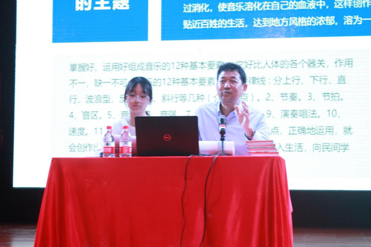 随后,他对作品的歌词、演唱、作曲、录音及制作进行详细介绍。最后,李家全老师向大家传授如何运用组成音乐的12种基本要素的方法,同时他教导同学们要走进生活,从民间学习优秀的传统音乐文化。
