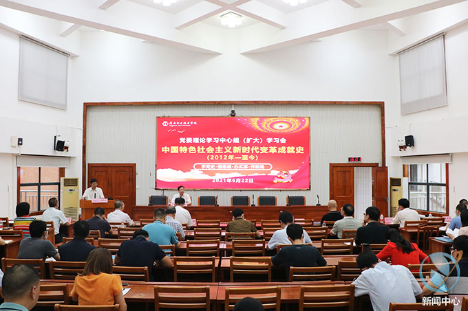 为强化党员学史明理、学史增信、学史崇德、学史力行,6月22日,我校于行政楼C108召开党委中心组(扩大)学习会。我校党政班子成员,各部门主要负责人,各党(总)支部书记,专职组织员,党史学习教育成员参加此次会议。本次会议由思政部老师张伟东主讲,党委书记韦荣主持。