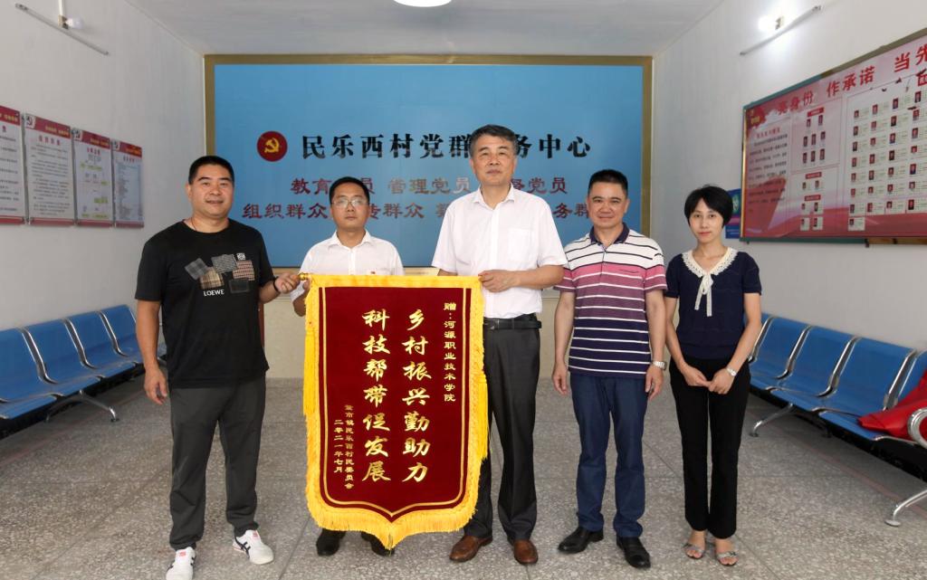 当天,紫市镇民乐西村、新南村村委还向我校赠送锦旗,感谢学校在乡村振兴、科技服务等方面长期以来给予的帮扶。陈德清、袁光华代表学校接受锦旗。