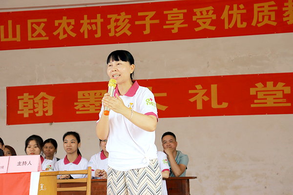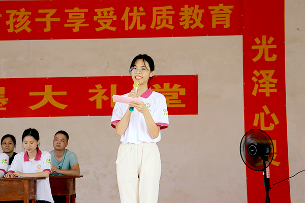 仪式伊始,叶茂坤校长为此次活动进行了致辞,首先他对参加此次活动的郑尔君老师和志愿者老师、同学们表示了诚挚的问候和衷心的感谢。紧接着对本校的学生提出了两点要求:一是要珍惜机会,学会感恩;二是要艰苦奋斗,砥砺成才!而后,郑尔君老师发表了讲话,她与台下的学生们进行有趣的互动,充分调动了学生们的积极性,活跃了现场气氛。最后,由学生志愿者代表罗佳怡同学对此次活动的时间安排及活动亮点进行了阐述,并且代表此次志愿者学生们表达了全力办好此次活动的决心,践行“不忘初心,育人为本”的教育宗旨。