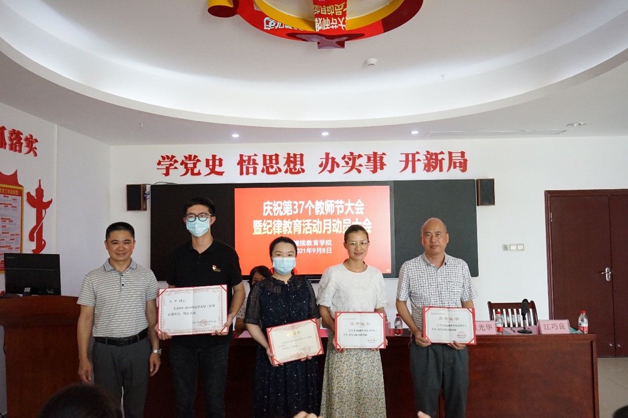 9月8日,继续教育学院召开2021年庆祝教师节大会暨纪律教育学习月活动动员会。陈德清校长、袁光华副校长、相关部门负责人及继续教育学院全体人员参加会议。继续教育学院江巧良副院长主持会议。