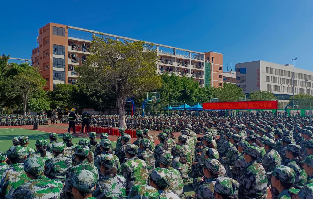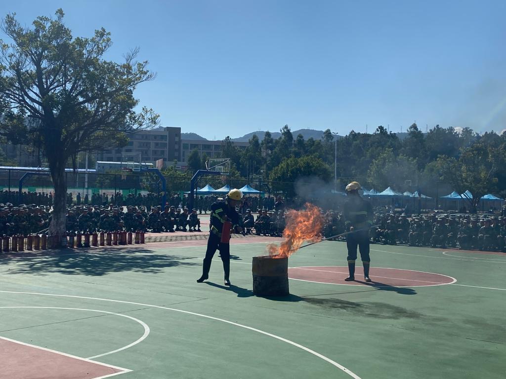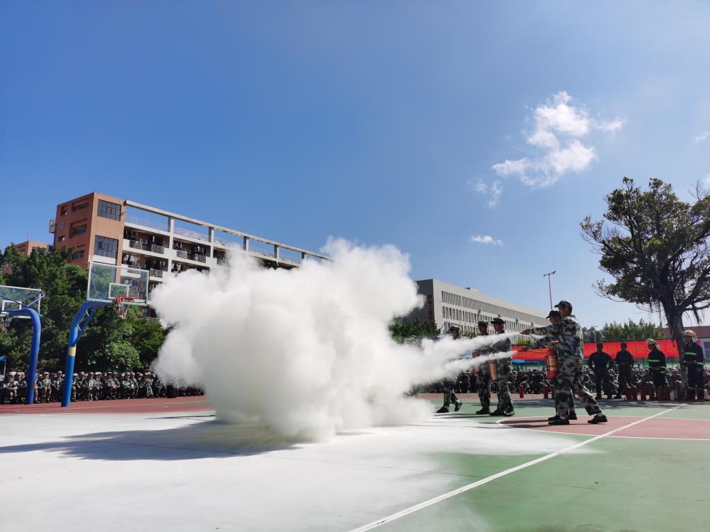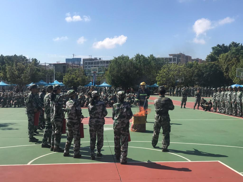 为了提高新生的自护、自救与互救的能力以及消防安全技能,确保校园安全。9月24日上午,我校在军训现场举行2021级新生消防安全培训,全体新生参加了培训。