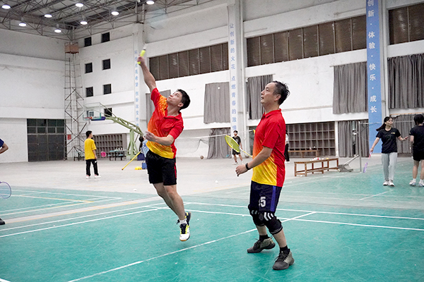 颁奖仪式后,师生羽毛球队本着“师生情谊第一,比赛第二”的原则开赛,学生队依靠精湛的技术、出色的身体素质不断从赛场上制造得分点;而老师队则凭借丰富的经验、娴熟的配合每分必争,双方比赛中热血又激烈,高远球、搓球、扣杀、吊球等各路球技被师生们演绎得淋漓尽致。他们在赛场上斗志昂扬,扬长避短,把进攻和防守都表现得精彩绝伦。