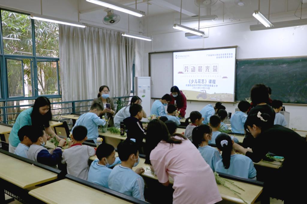 为全面贯彻党的教育方针,大力加强新时代劳动教育。10月26日,我校开展了广东省中小学生劳动教育基地第一期劳动教育实践活动,共有205名小学生参加了本次劳动教育实践活动。小学生们分别在陶艺、烘培食品制作、中国传统服饰设计制作体验、植物拓染、墩头蓝布艺蓝染、花卉扦插繁殖、少儿花艺、手工产品制作这8门课程中进行劳动教育实践活动,体验劳动生活、树立劳动意识。本次劳动教育实践活动在广大师生精心组织下取得圆满成功。