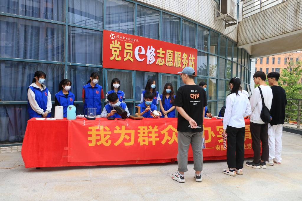 电子与信息工程学院党支部19计算机网络技术2班的张雅婷代表学生发言。她表示,党员“e修”志愿服务队的成立,为广大积极向党组织靠拢的同学提供了增强思想教育、提高学习技能、锻炼技术水平、发扬志愿服务精神的重要平台。服务队成立后,全体队员依托平台建设,不断向党组织靠拢、争做先锋、做好带头表率作用。