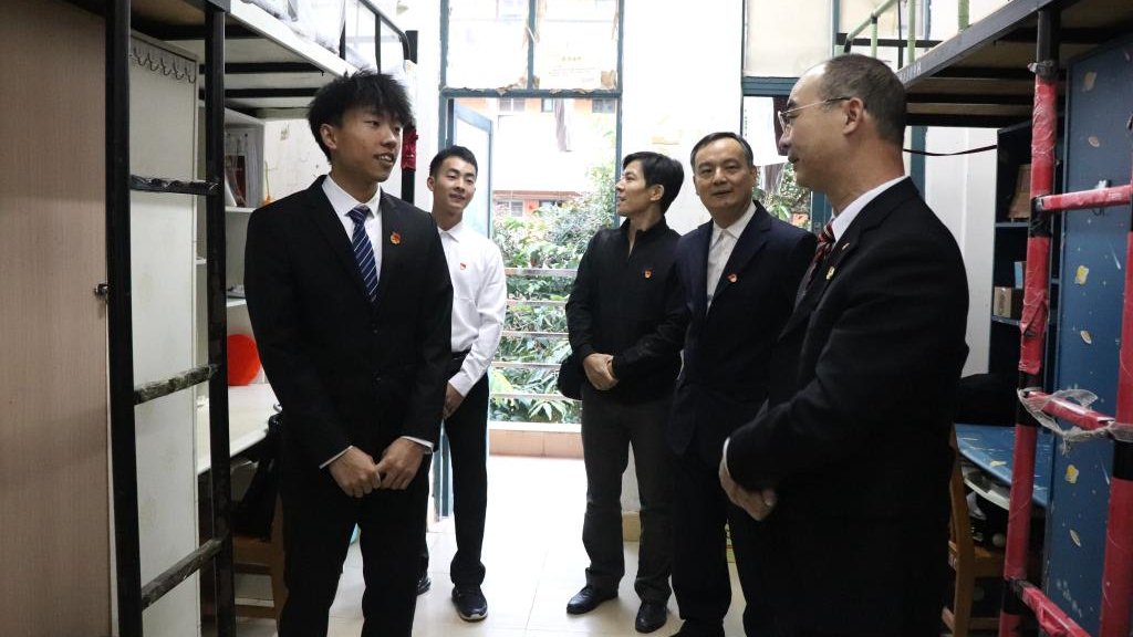 赖小景副校长为全体学生党员宿舍授牌后,深入学生宿舍党建联系点参观指导,与学生党员们亲切畅谈,勉励党员同志要永葆青春本色,坚定理想信念,充分发挥党员先锋模范作用,在宿舍文化建设、学校德育和法制教育中贯彻立德树人的根本任务,不断提高党员的责任感和荣誉感,提高基层党组织的凝聚力、影响力。