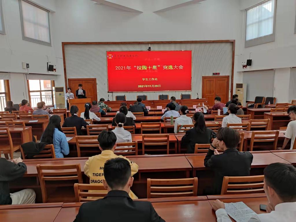 11月25日,我校在行政楼第一会议室举行“校园十星”评审会。学生工作处、教务处、校团委、保卫处等部门相关负责人及各学院副书记、相关评委出席会议。根据工作安排,2021年“校园十星”答辩会已完成个人申请、学院推荐、网络投票和初选环节。本着客观、公平、公正的原则,严格按照学校评选要求,确保所提交资料真实可靠,经过筛选各二级学院初步评选出“校园十星”参评候选人20名。