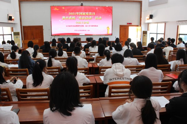 为深入学习贯彻习近平法治思想,我校于12月3日上午在行政楼C108会议室组织学生代表观看国家宪法日“宪法晨读”视频直播会议。各二级学院师生代表参加此次活动。