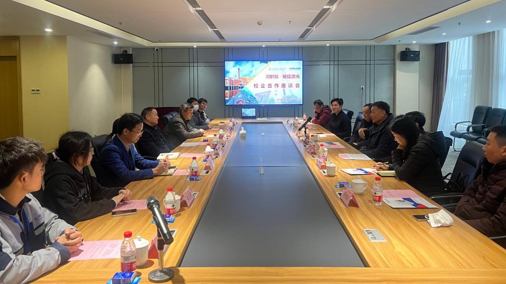 铭镭激光董事长王余生热情接待了我校一行,向我校人员详细介绍了我校学生的相关岗位、薪资待遇、职业发展与晋升通道。王余生董事长表示我校学生专业技术扎实、踏实上进,有效缓解了企业用工压力。