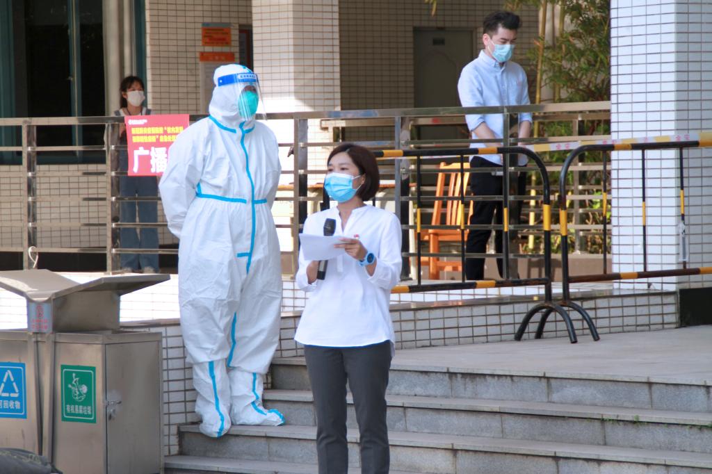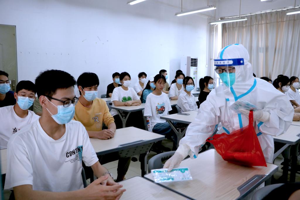 转运初筛阳性学生到临时隔离室,等待疾控人员进行现场采样和流调