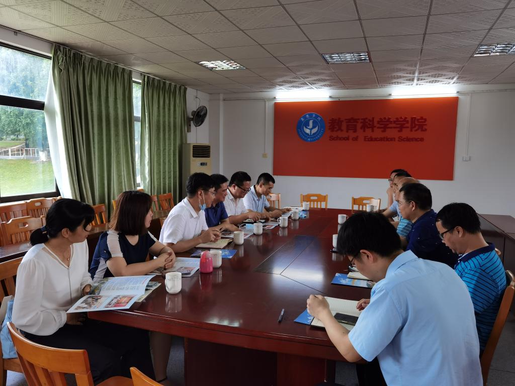 嘉应学院教务处处长何优选及教育科学学院班子首先热情接待了袁光华一行,双方在嘉应学院李小平教学楼会议室进行了交流座谈。