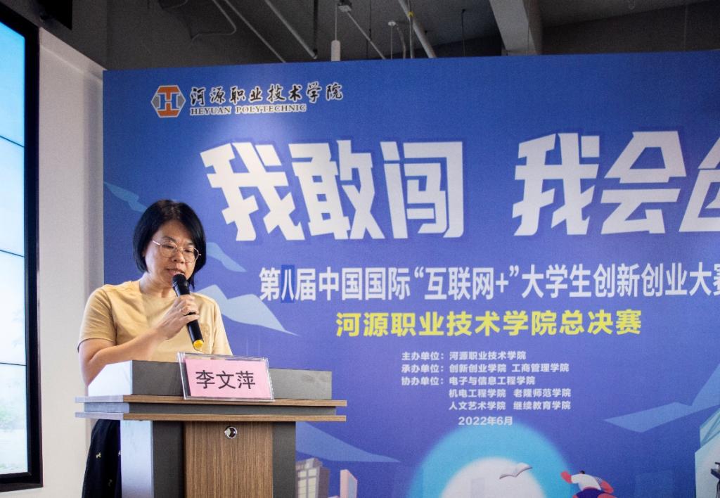 创新创业学院李文萍院长以《绽放青春,不负韶华》为题进行了热情洋溢的致辞。她首先向各位评审专家莅临指导表示感谢,对二级学院对创新创业学院的鼎力支持表示深深的谢意。她强调,“互联网+”大学生创新创业大赛是推动创新创业教育系统性变革的“切口”,是支持创新创业青年学生全方位成长的“舞台”,是服务河源融深融湾创新驱动发展新时代需求的“渠道”。我们要切实提高学生的创新精神、创业意识和创新创业能力,推动赛事成果转化和产学研用紧密结合,以创新引领创业、以创业带动就业,努力形成更高质量创业就业的新局面。