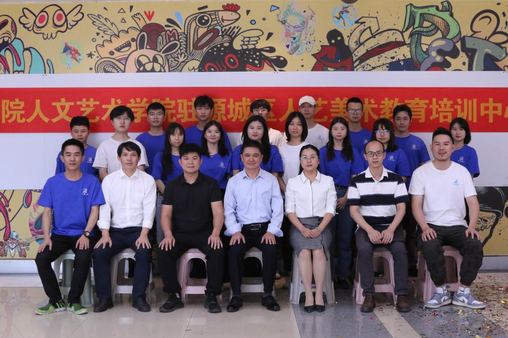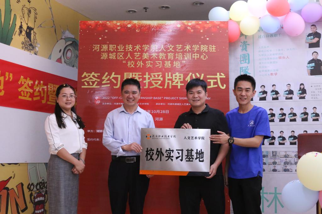 10月28日,人文艺术学院与源城区人艺美术培训学校举行校外实习基地签约揭牌仪式,学校副校长袁光华、人文艺术学院院长罗春娜、副院长王方、校企办主任张振参加了签约揭牌仪式。