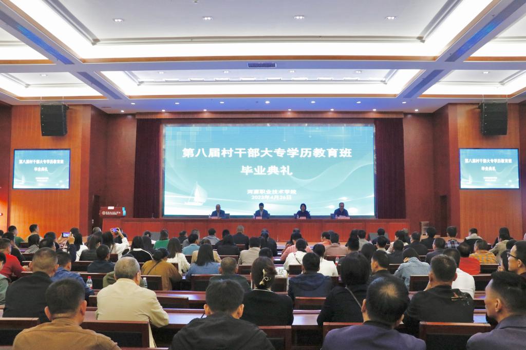 4月26日上午,我校在学术交流中心报告厅举行河源市第八届村干部大专学历教育班毕业典礼。袁光华副校长、继续教育学院有关负责人以及第八届村干部大专学历教育班371名毕业生参加了毕业典礼,继续教育学院党总支彭仲文副书记主持毕业典礼。