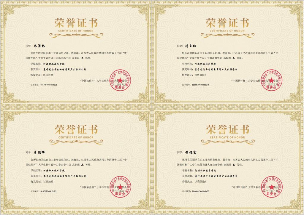 8月17日-21日,第十二届“中国软件杯”大学生软件设计大赛”在南京航空航天大学举行,工业和信息化部副部长王江平、江苏省副省长胡广杰出席活动并致辞。我校软件技术专业朱涛林、李鹏辉、黄椿富和大数据应用技术专业刘玉权四位同学组成的“群龙队”荣获全国总决赛三等奖。