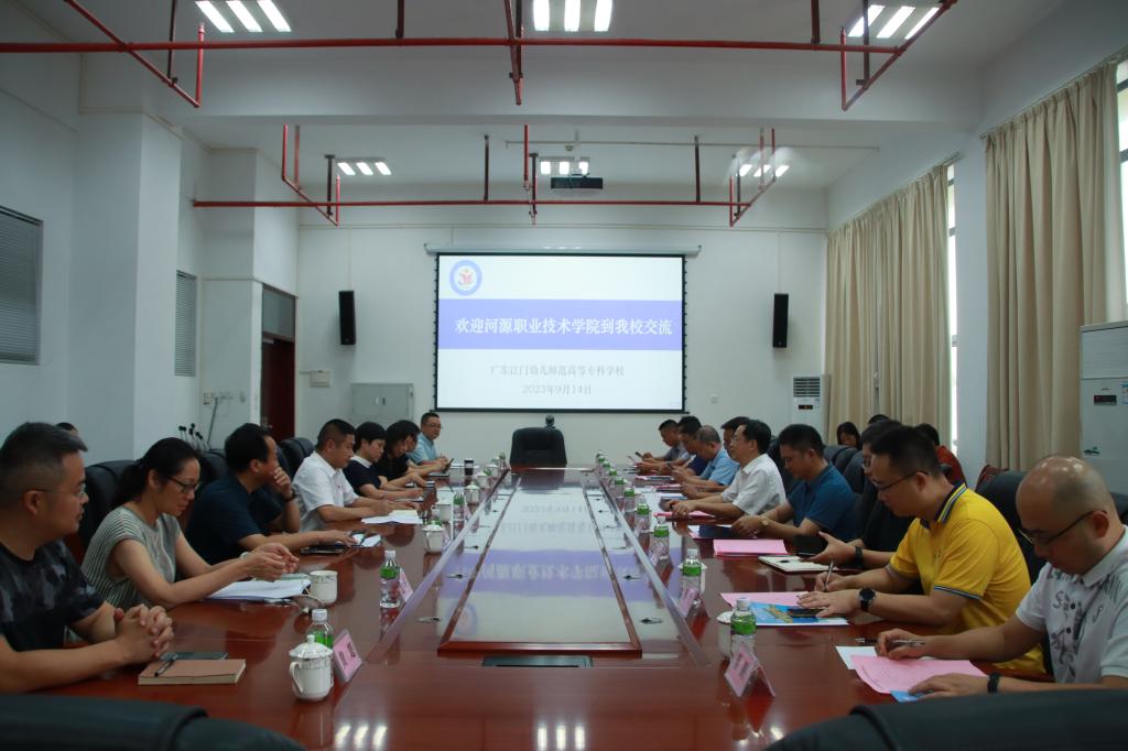 9月14日下午,韦荣书记率队赴江门职院调研学习。韦荣书记首先参观了江门职院-华为信息与网络技术(ICT)学院。江门职院党委书记张忠林、副校长孙宁,党政办、教务部、科研部、财务部、组织部等部门和相关学院负责人参加座谈会。张忠林在致辞中对来访表示热烈欢迎,并从双高建设、人才培养、干部聘任、人才引进、办学条件达标工程等方面详细介绍了江门职院的办学成就。韦荣感谢江门职院对此次调研的大力支持和细致安排。他指出,江门职院在内涵建设的各方面都有值得学习的诸多宝贵经验,希望通过此次学习,能够进一步推进双方交流合作,并希望江门职院能在双高建设、人才培养等方面给予我校更多的指导和帮助。