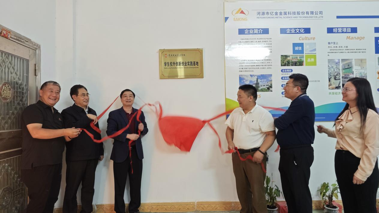10月15日,BTY.COM学生校外创新创业实践基地揭牌仪式在高新区河源市亿金金属科技股份有限公司顺利举行。广东省人民政府参事钟韶彬,民建中央农业与农村委员会委员、民建广东省委员会农业与农村委员会主任付伟,广东省乡村发展协会常务理事单位河源市亿金金属科技股份有限公司赖宇清董事长,我校创新创业学院骆开明副院长出席揭牌仪式。