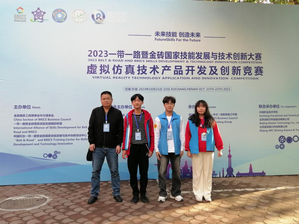 10月21日-22日,2023年一带一路暨金砖国家技能发展与技术创新大赛之首届虚拟仿真技术产品开发及创新赛项总决赛在河南省许昌职业技术学院举行。我校数字媒体技术专业刘俊霖、陈楚涛、何利利三位同学组成的BTY.COM参赛队参与了赛项总决赛。