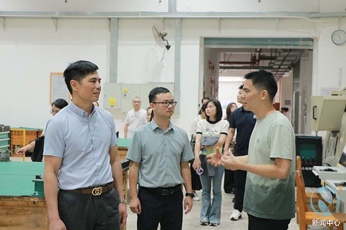 陆英华副局长一行人在钟建坤院长等相关人员的陪同下,先后参观了学校烹饪实训基地、校史馆及机电工程学院相关实训基地。