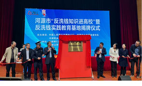 为扩大反洗钱宣传的穿透力和辐射面,提高反洗钱宣传的针对性和实效性,按照“反洗钱知识进高校”三年宣教活动(2022-2024年)的规划,11月16日下午,中国人民银行河源市分行、河源市公安局经侦支队联合我校举办河源市“反洗钱知识进高校”暨反洗钱实践教育基地揭牌仪式。中国人民银行河源市分行陈舒文副行长、河源市公安局程献忠支队长、袁光华副校长出席活动。中国人民银行河源市分行、河源市公安局经侦支队、中国银行代表,我校宣传部、工商管理学院相关人员,以及相关专业学生参加活动。